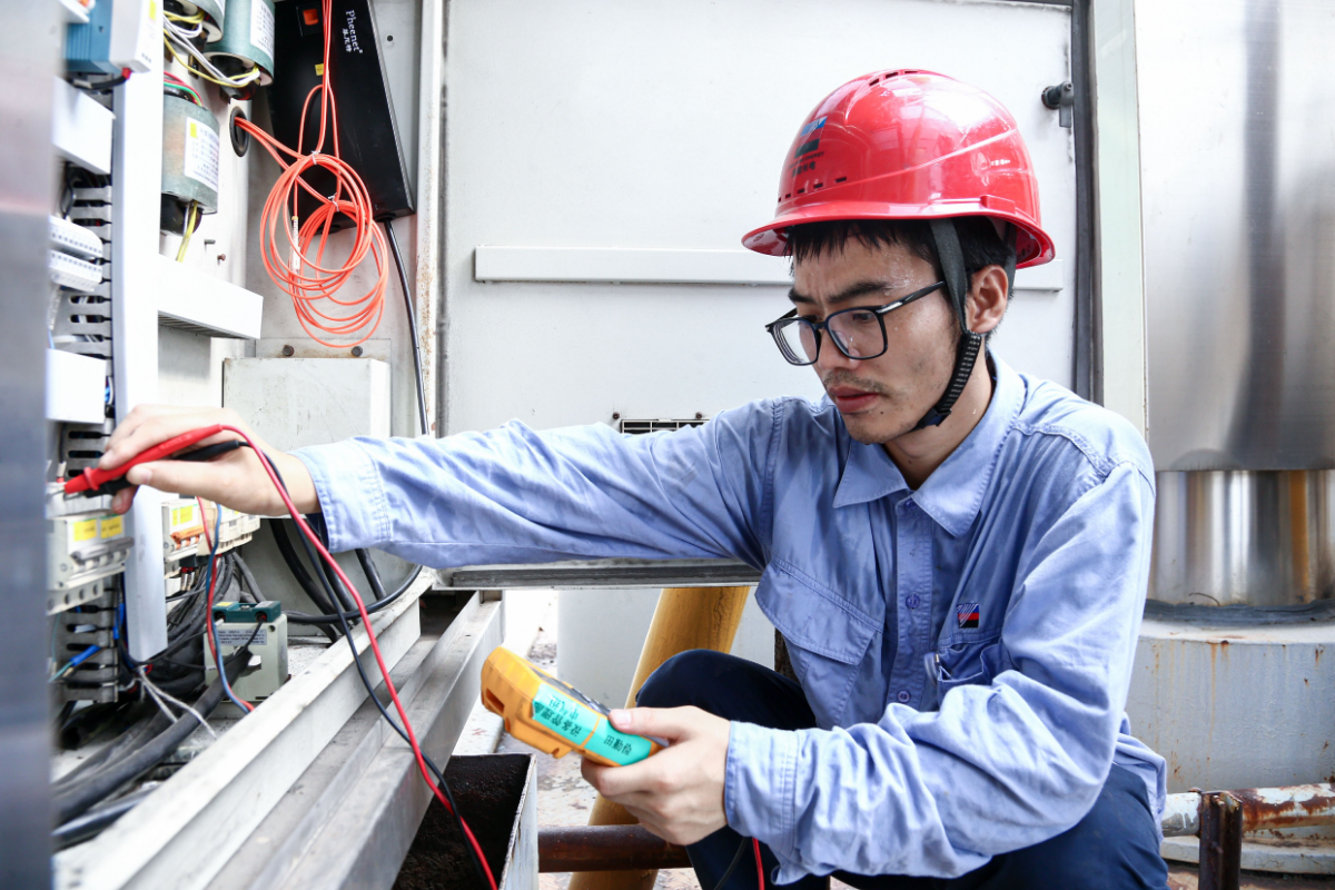 高溫將設備烤得滾燙,浙能燃氣安吉公司場站運行人員嚴謹做好設備維護保障,確保全縣平穩供氣。 包融融 攝