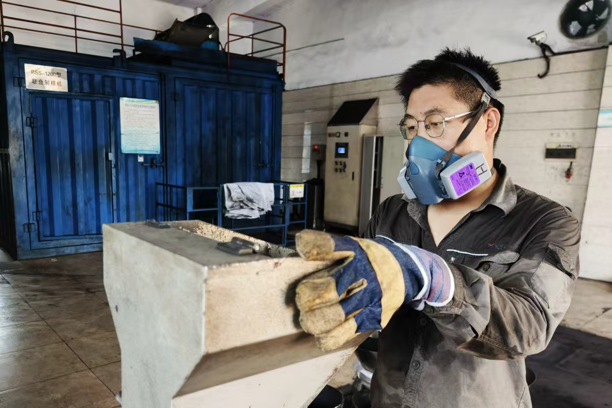 浙江越華在“熱辣滾燙”中筑牢電煤保供“第一關”,圖為采制人員對煤樣進行破碎。 葉其彬 攝